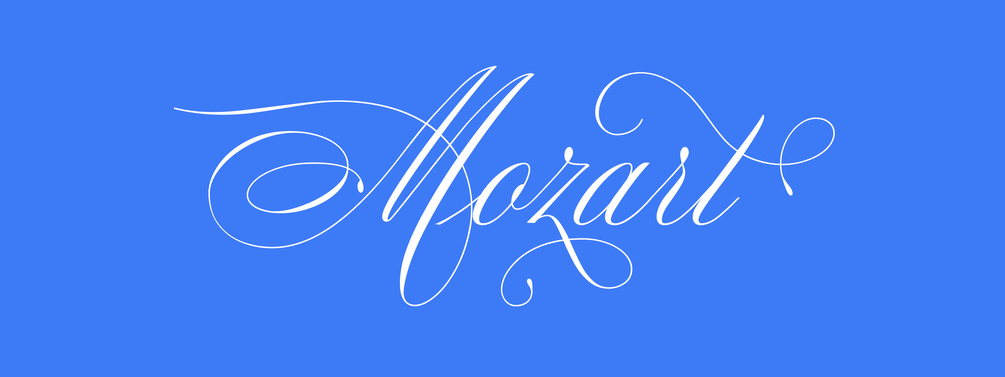 Mozart Script - an elegant spencerian script with a filling of early American handwriting. Very formal and yet playful multilingual font-family. Mozart font is the most popular among wedding designers.